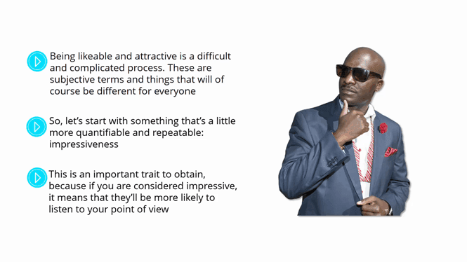 But of course, the ability to present yourself in a certain way and to make yourself more instantly magnetic and likeable can be useful in a whole myriad of different situations.