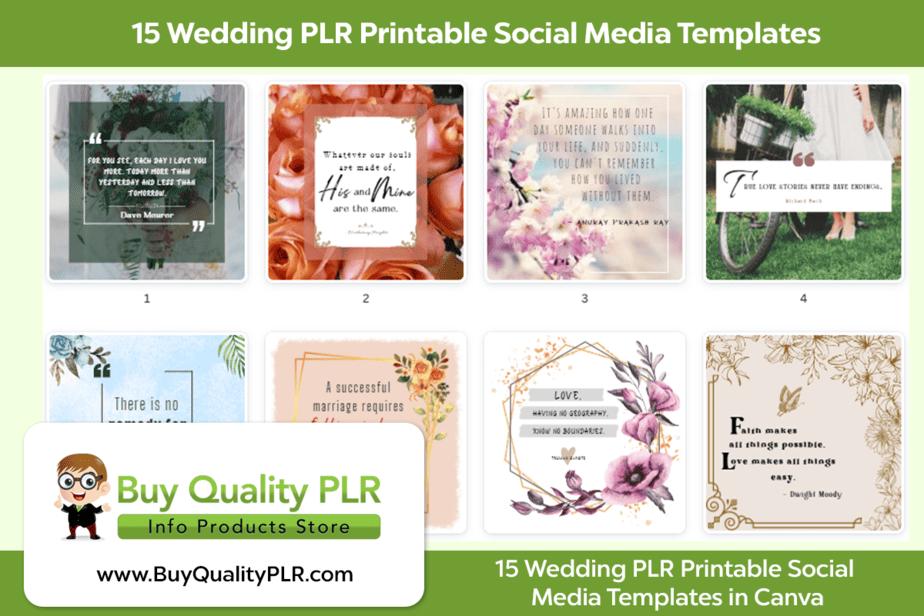 The 15 Wedding PLR Printable Social Media Templates Pack – Includes Editable Canva Printable Social Media Graphics With Commercial Use Rights