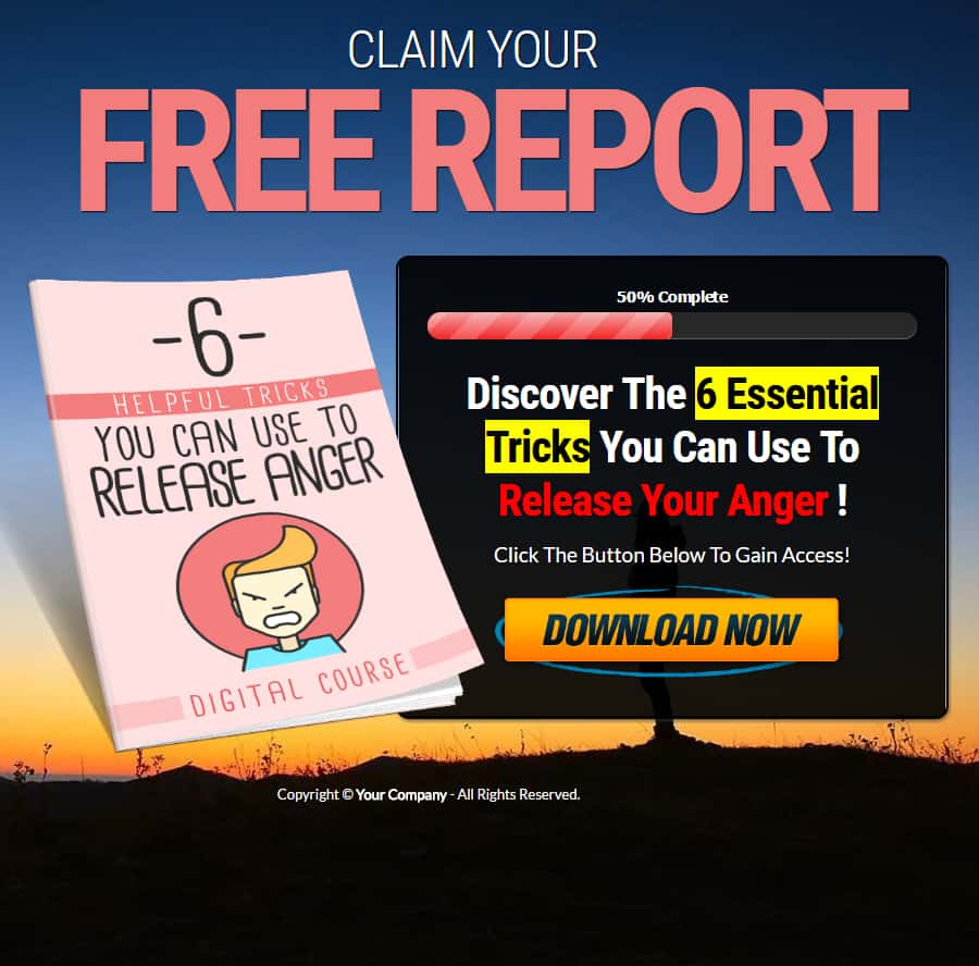 You can seriously set up this anger relief report funnel in this package within just a few minutes. The included step-by-step guide packaged with the report will take you by the hand and walk you through the process of setting up the report, the squeeze page and everything else.