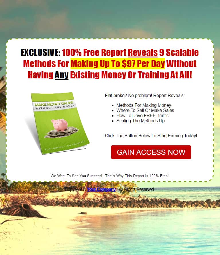 That’s why you can give them this course for no cost at all that reveals 9 ways to make money online that don’t involve any money to start. Better yet, these 9 methods aren’t some fly-by-night techniques that will die off in a year or two. They’re methods that anybody and everybody can use to start earning cash online and then scale it up to even more profits.