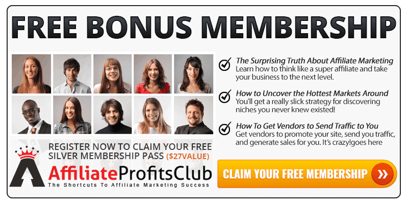 … Well it’s good news because today you can use the special link below to claim a FREE Silver membership at AffiliateProfitsClub (normally $27)