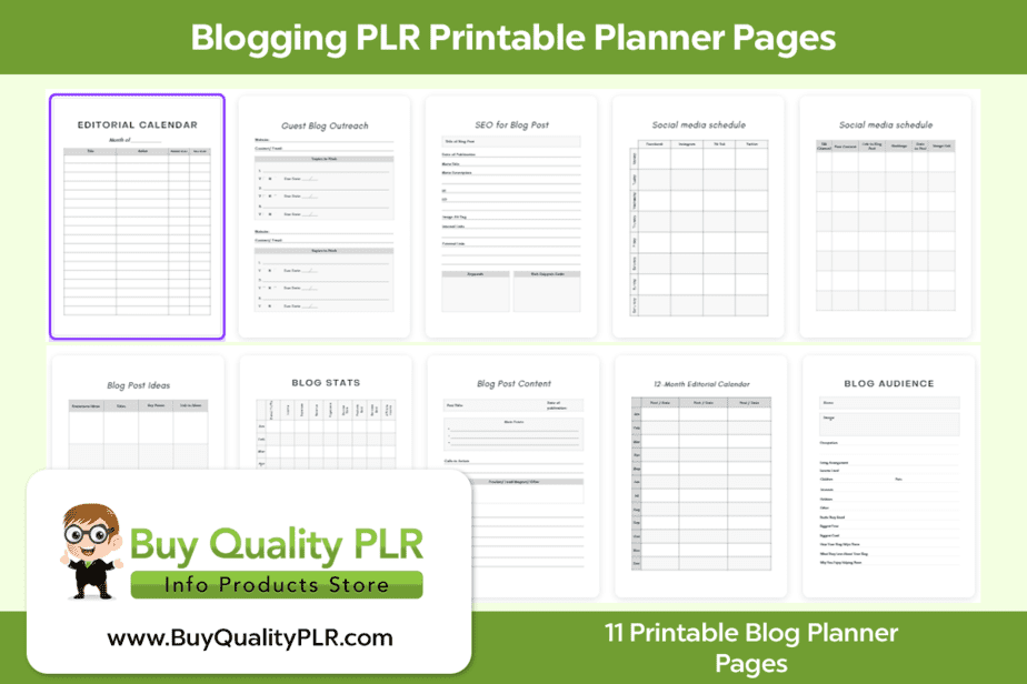 Blogging PLR Printable Planner Pages – Includes 11 Printable Blog Planner Pages With Commercial Use Rights