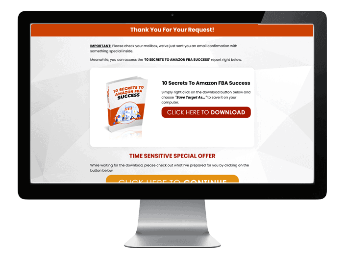 10 Secrets To Amazon FBA Success Lead Capture Page