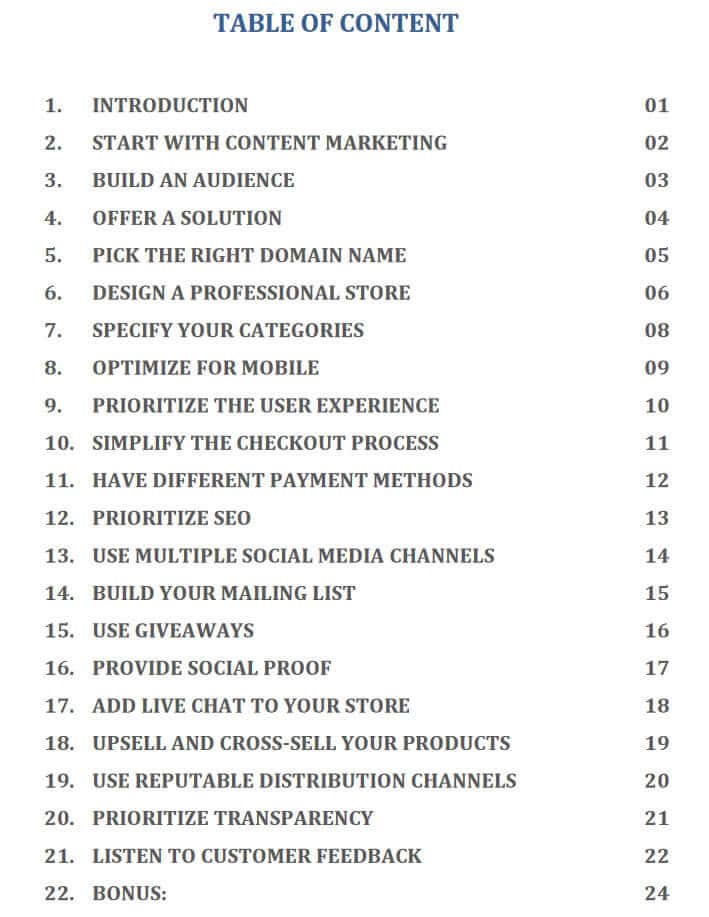 20 Ecommerce Secrets For New Entrepreneurs Table of Content