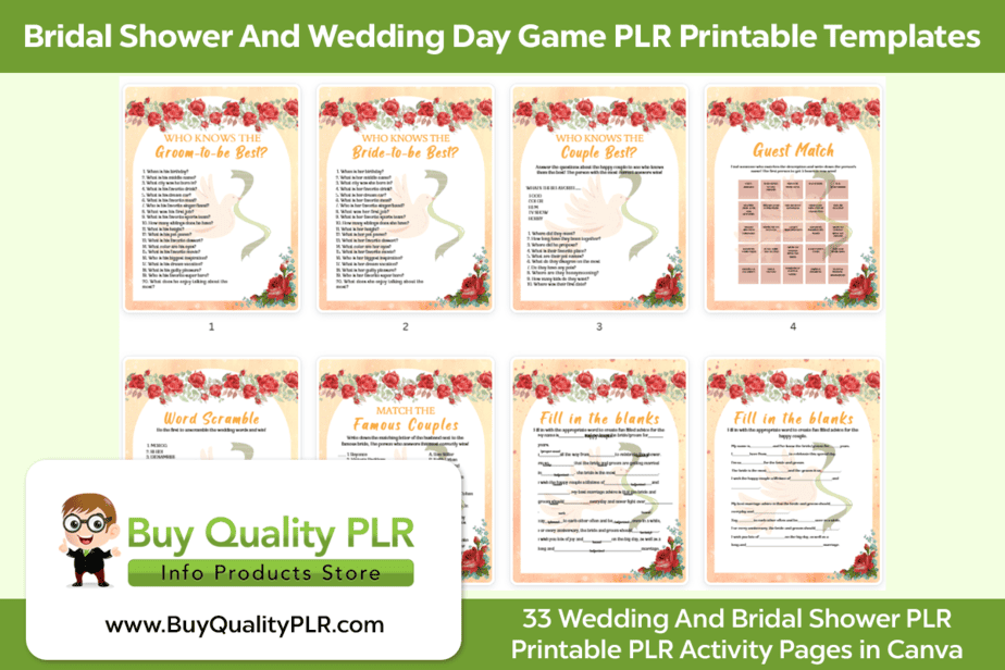 Our Bridal Shower and Wedding Day Game PLR Printable Templates offer a collection of engaging and customizable games that will light up the celebrations and create unforgettable memories.