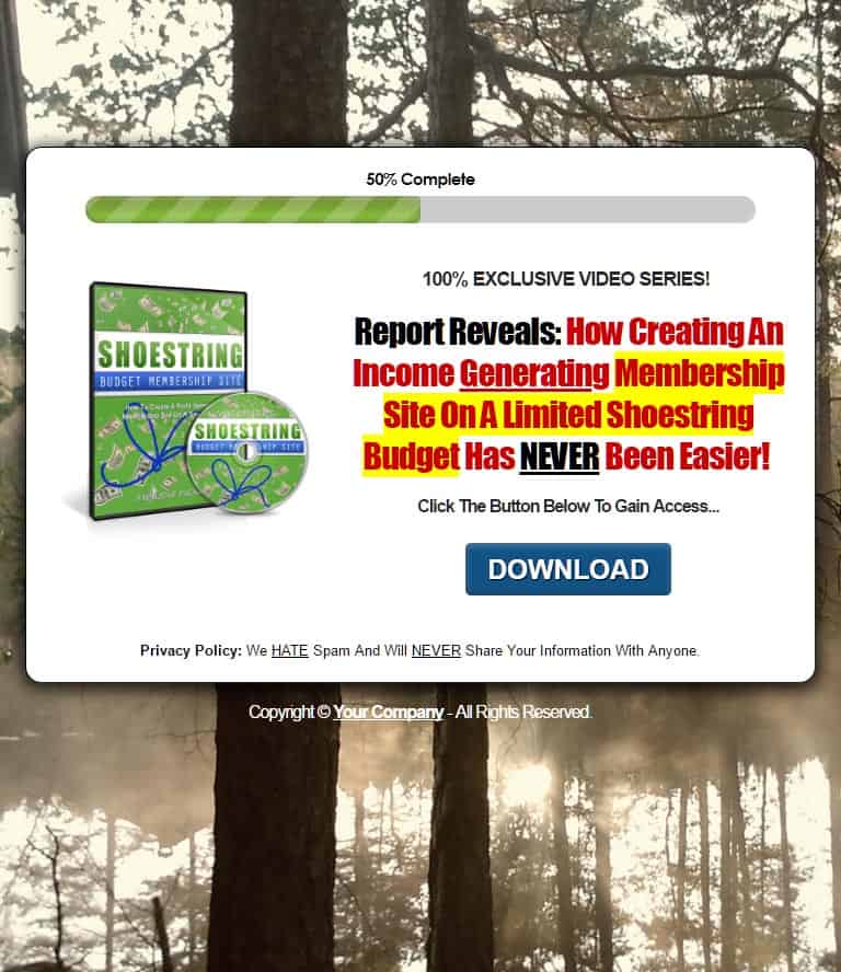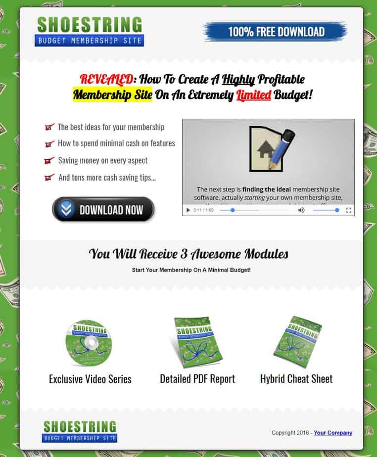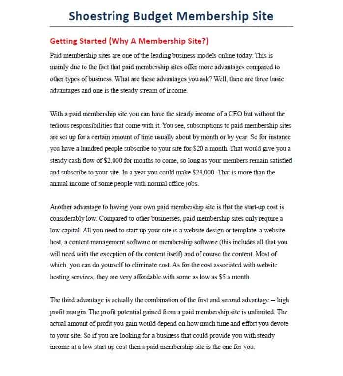 This shoestring budget membership site report will provide the leads you distribute it to with the inspiration, motivation, and knowledge to further their online money making adventure. As opposed to just handing them to some bottom tier completely useless information, you’re giving subscribers an actionable report that they can utilize to improve their efforts all around.