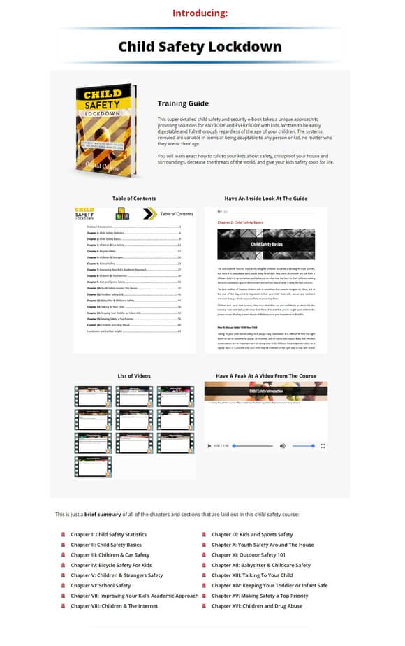 Now you can kick start your knowledge on keeping kids safe and teaching them safety, because this 10 part step-by-step video training series will cover everything inside of the e-book guide AND more.