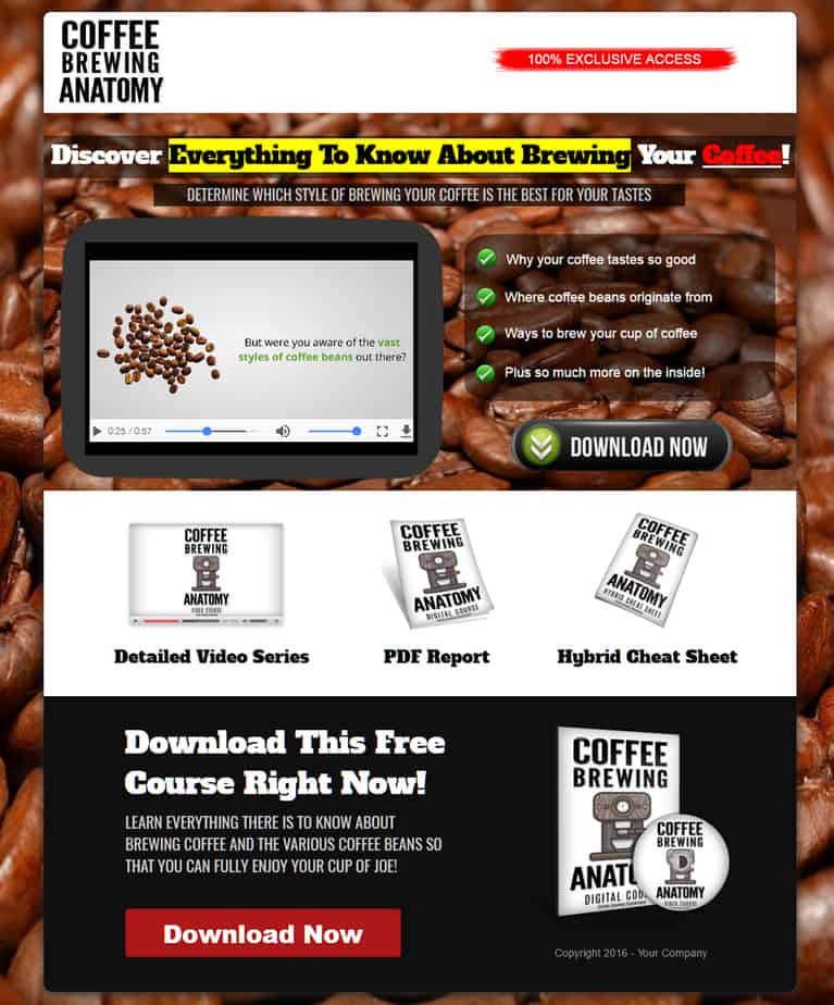 Our lead magnet here is a perfect way to build your list or provide your audience with relevant and useful information regarding everything coffee. The course itself covers a variety of details and the way it’s presented, none of the information will ever go out of date.