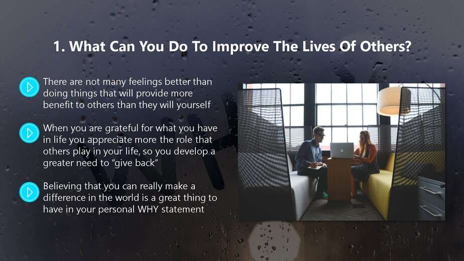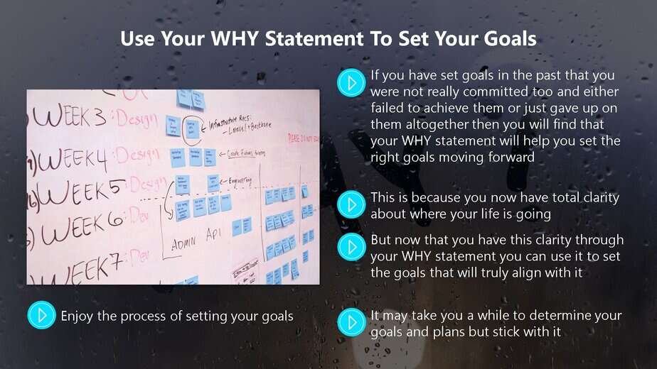 • You want to know how you can keep your WHY statement uppermost in your mind.