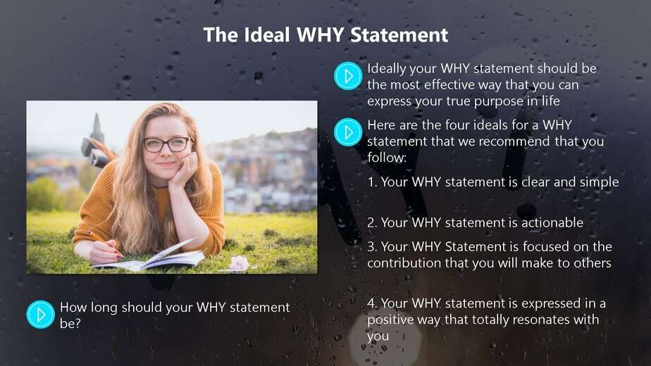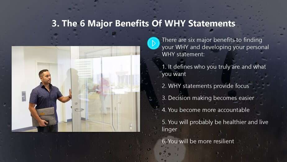 • You will learn how you can keep your WHY statement uppermost in your mind.