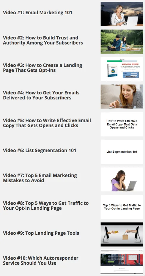 Email List Secrets is a 12-part course covering essentials and advanced aspects of email marketing.
