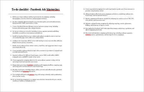 Facebook Ads Masterclass – Checklist