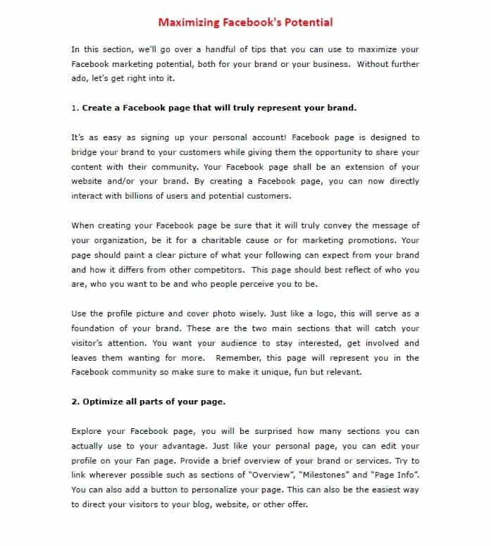 This Facebook marketing report will provide the leads you distribute it to with the inspiration, motivation, and knowledge to further their online money making adventure. As opposed to just handing them to some bottom tier completely useless information, you’re giving subscribers an actionable report that they can utilize to improve their efforts all around.