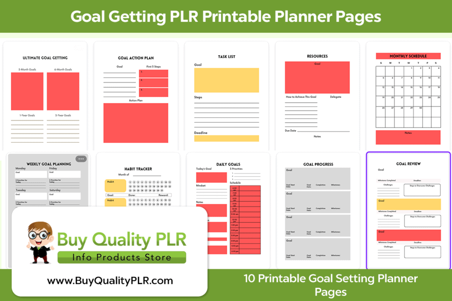 Goal Getting PLR Printable Planner Pages – Includes 10 Printable Goal Setting Planner Pages With Commercial Use Rights
