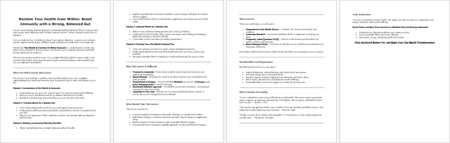 - ✅ Gut Health & Nutrition for Better Immunity Course (33,000 Words)