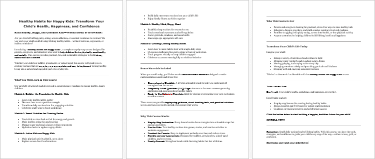 Healthy Habits for Happy Kids – Salespage Content