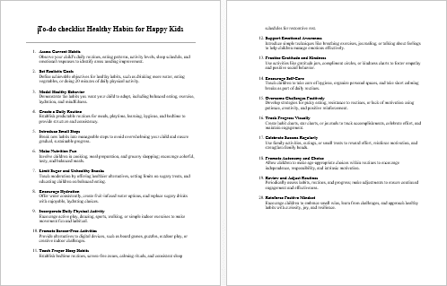 Healthy Habits for Happy Kids – Checklist