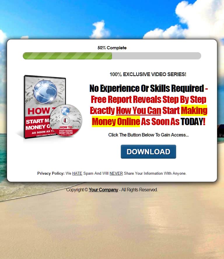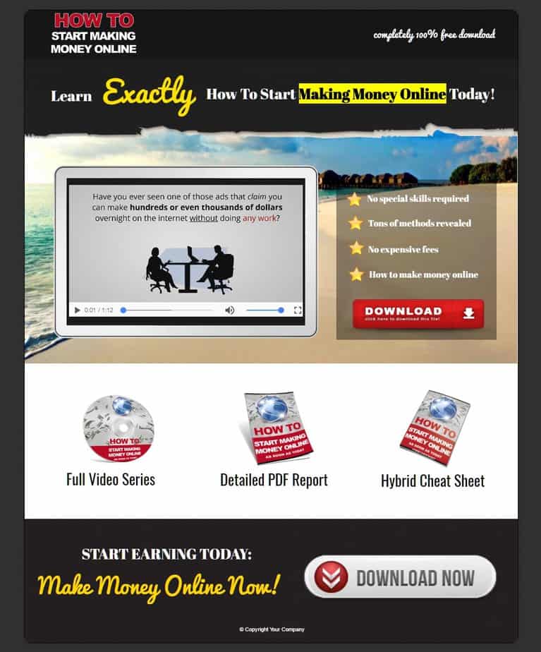 You can seriously set up this make money online report funnel in this package within just a few minutes. The included step-by-step guide packaged with the report will take you by the hand and walk you through the process of setting up the report, the squeeze page and everything else.