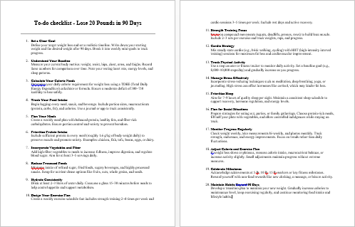 - Lose 20 Pounds in 90 Days – Checklist (591 Words)