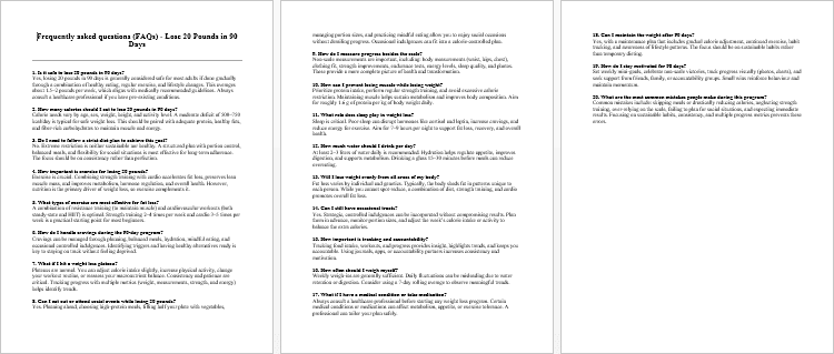 Quick reference to implement key strategies immediately. - Lose 20 Pounds in 90 Days – FAQs (892 Words)