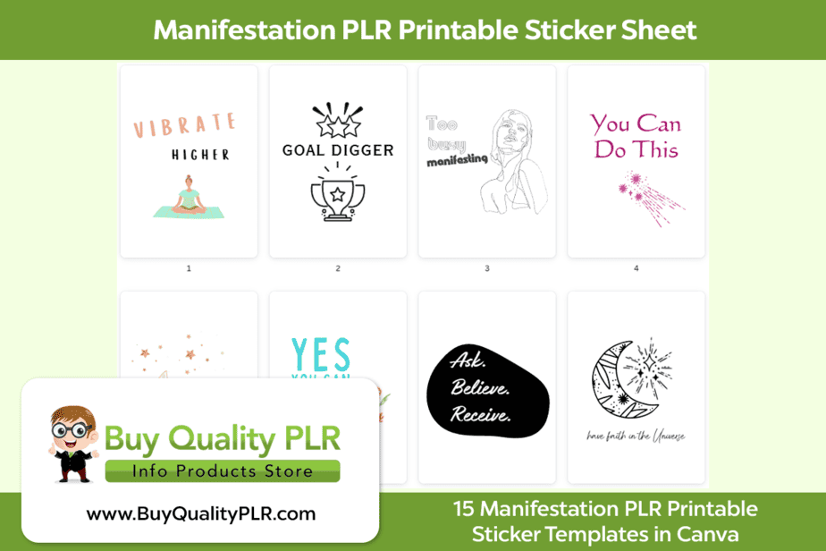 The Manifestation PLR Printable Stickers is just for you if you’re looking for printable sticker templates that can be used to create your own unique printables and profit! Perfect for you if you have a publishing business and are looking for new products or printables.