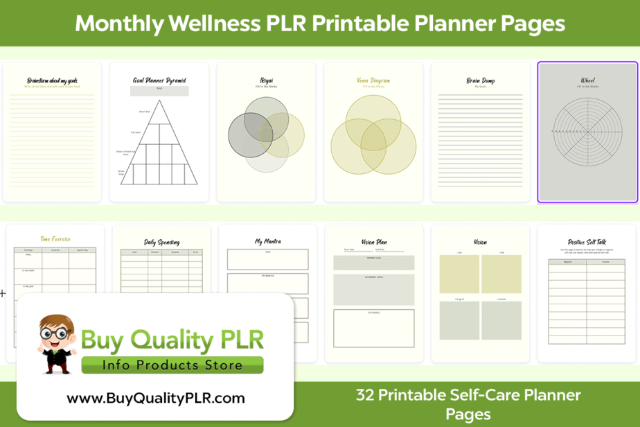 Monthly Wellness PLR Printable Planner Pages – Includes 32 Printable Self-Care Planner Pages With Commercial Use Rights