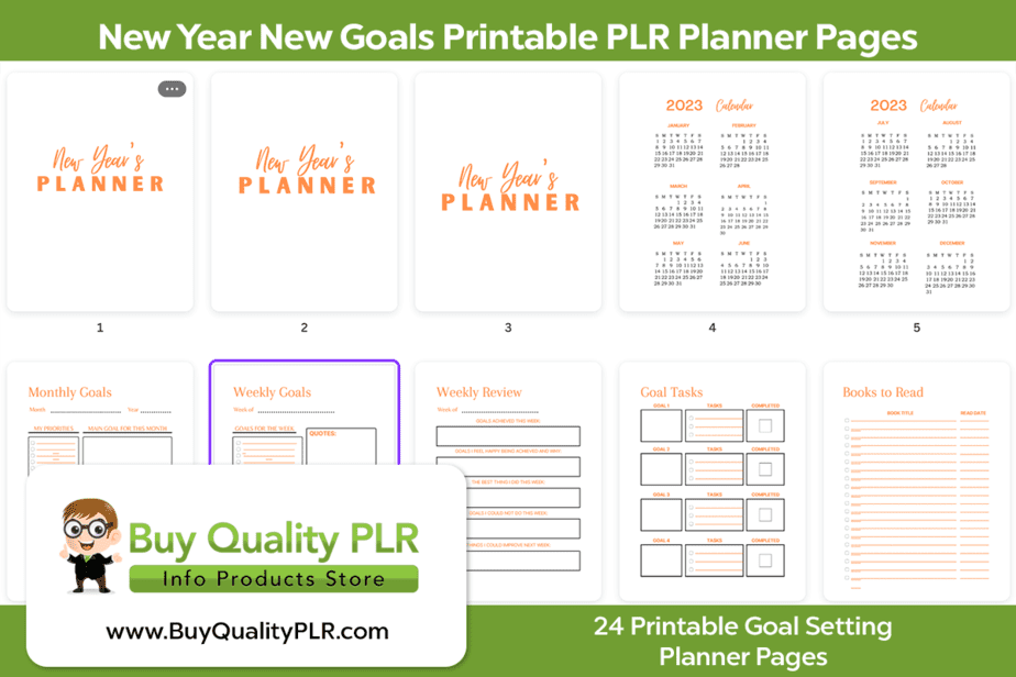 New Year New Goals Printable PLR Planner Pages – Includes 24 Printable Planner Pages With Commercial Use Rights