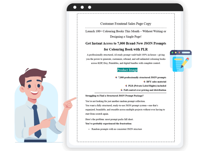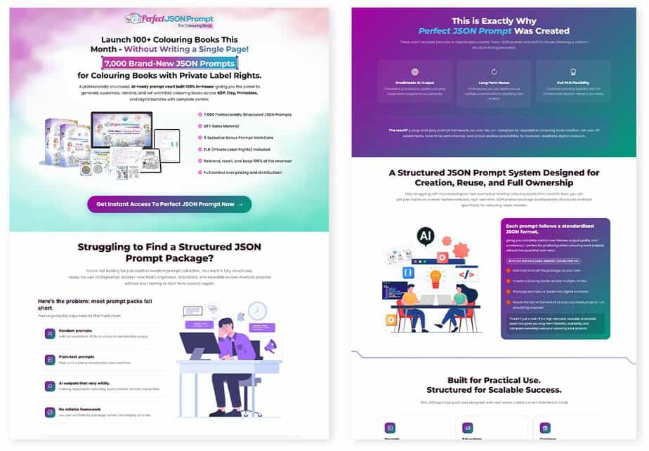 If you want a fully editable JSON prompt system with PLR (Private Label Rights) that gives you complete control over how your colouring books are created, packaged, and reused, this product was designed exactly for that purpose.