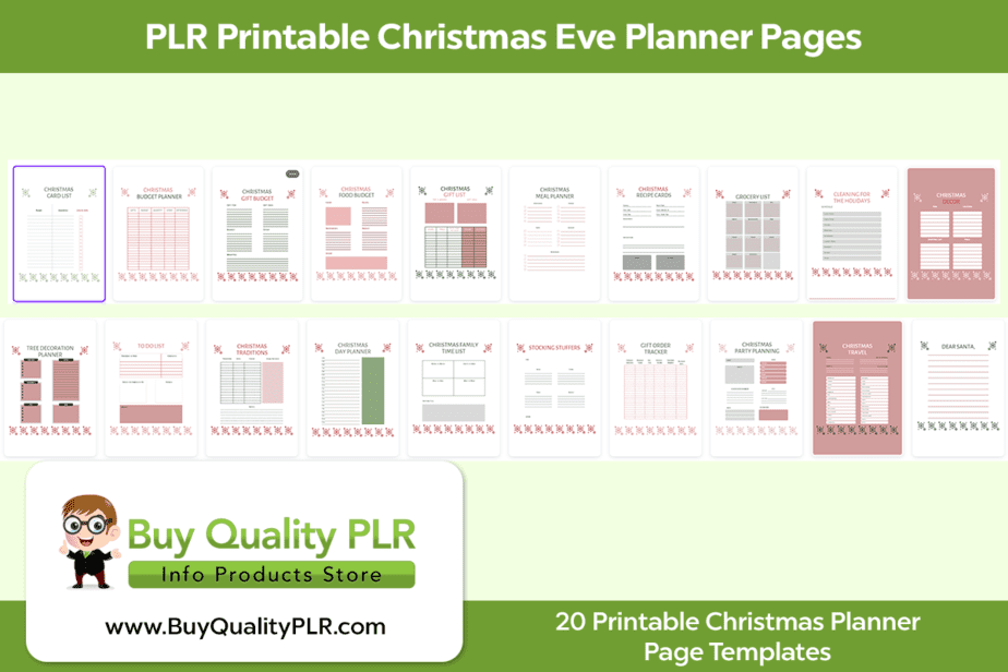 PLR Printable Christmas Eve Planner Pages – Includes 20 Printable Christmas Planner Page Templates Commercial Use Rights