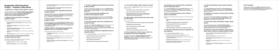 - FAQs (1,069 words): Answers to common questions about home value, renovations, and staging.