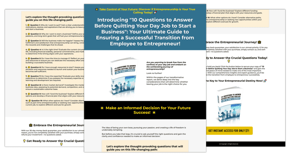 Package #2: 10 Questions To Answer Before Quitting Your Day Job To Start A Business
