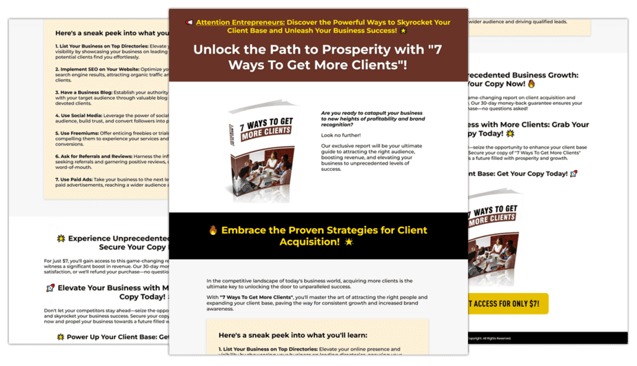 We’ve meticulously crafted 10 Ready-Made, high-converting Upsell Pages, fully prepared for you to effortlessly copy and paste onto your server.