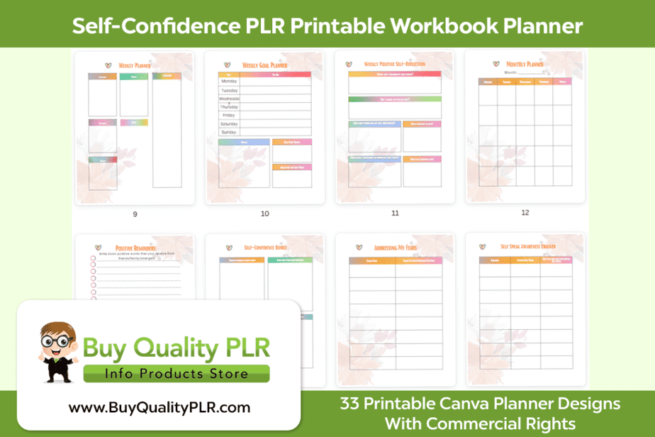 The Self Confidence PLR Printable Workbook Planner Pack – Includes Printable Canva PLR Planner Templates and More With Commercial Use Rights