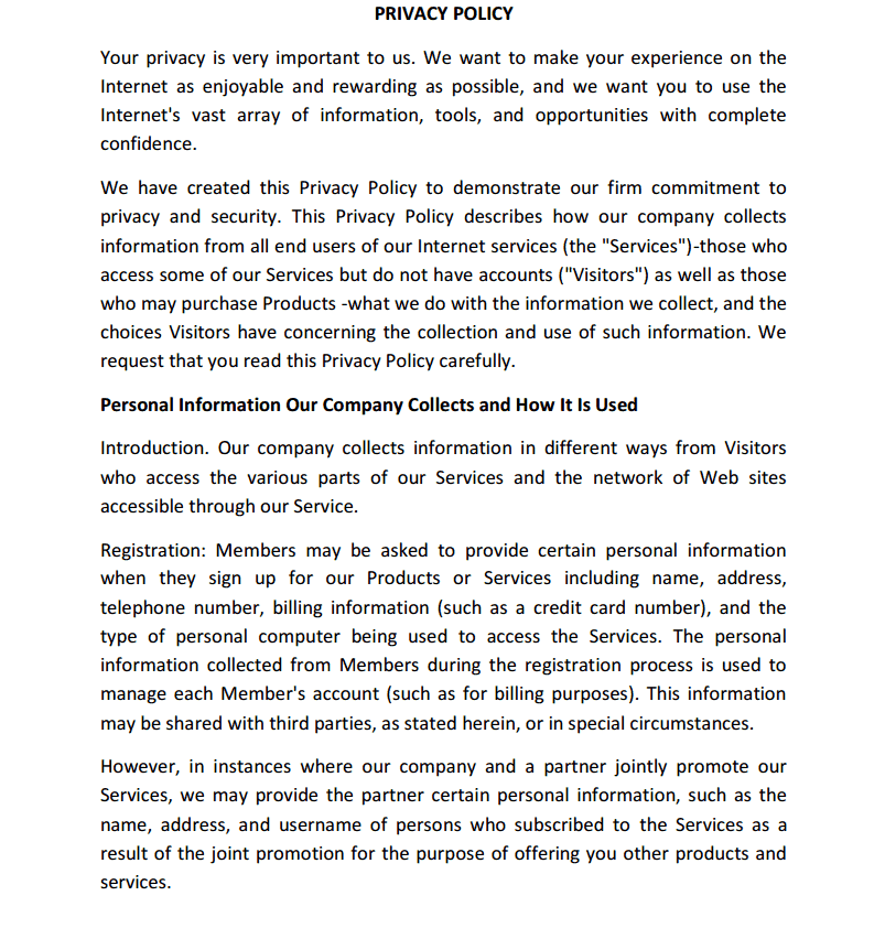 • You’re receiving a set of legal pages / documents that you can plug in to your site and link in the footer section of your sales page.