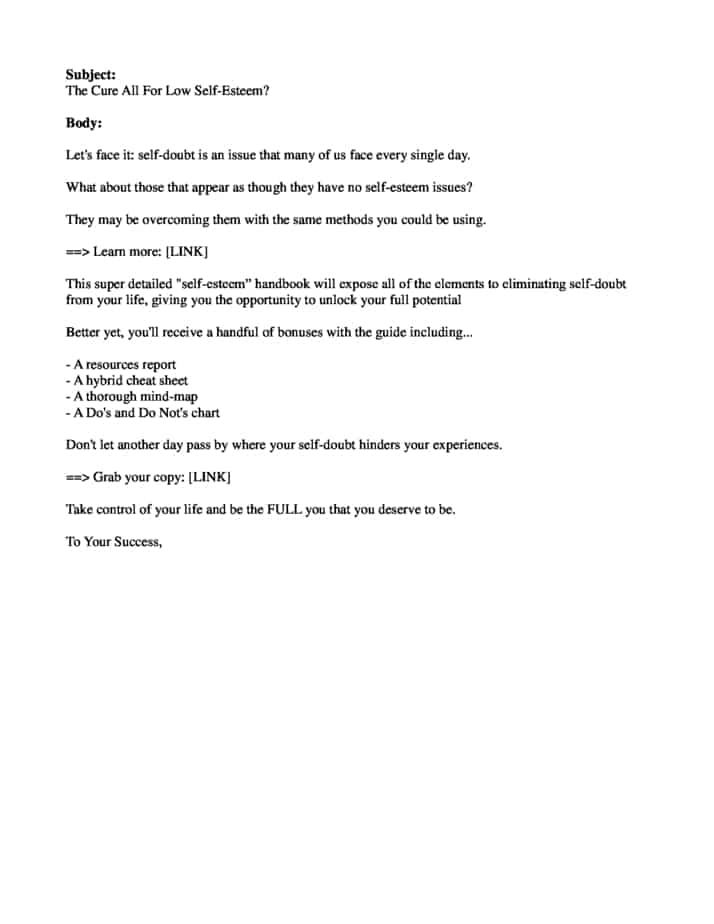 We’ve taken the time and effort to have 5 professionally written email swipes whipped up that are geared and focused on getting clicks and making conversions.
