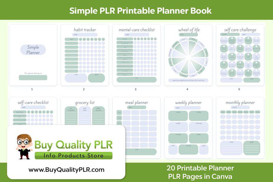 The Simple PLR Printable Planner Book provides 20 Printable Planner Pages. All files are easy to edit via Canva and publish to create new unique products and PLR printables that you can sell for profit on your low-content publishing store or use these templates for your designs.