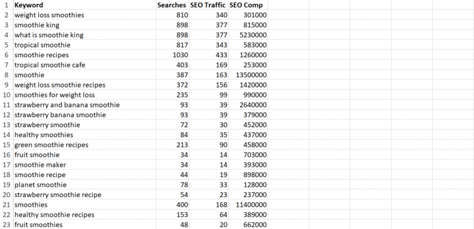 Smoothies and Superfoods Keyword Research Pack