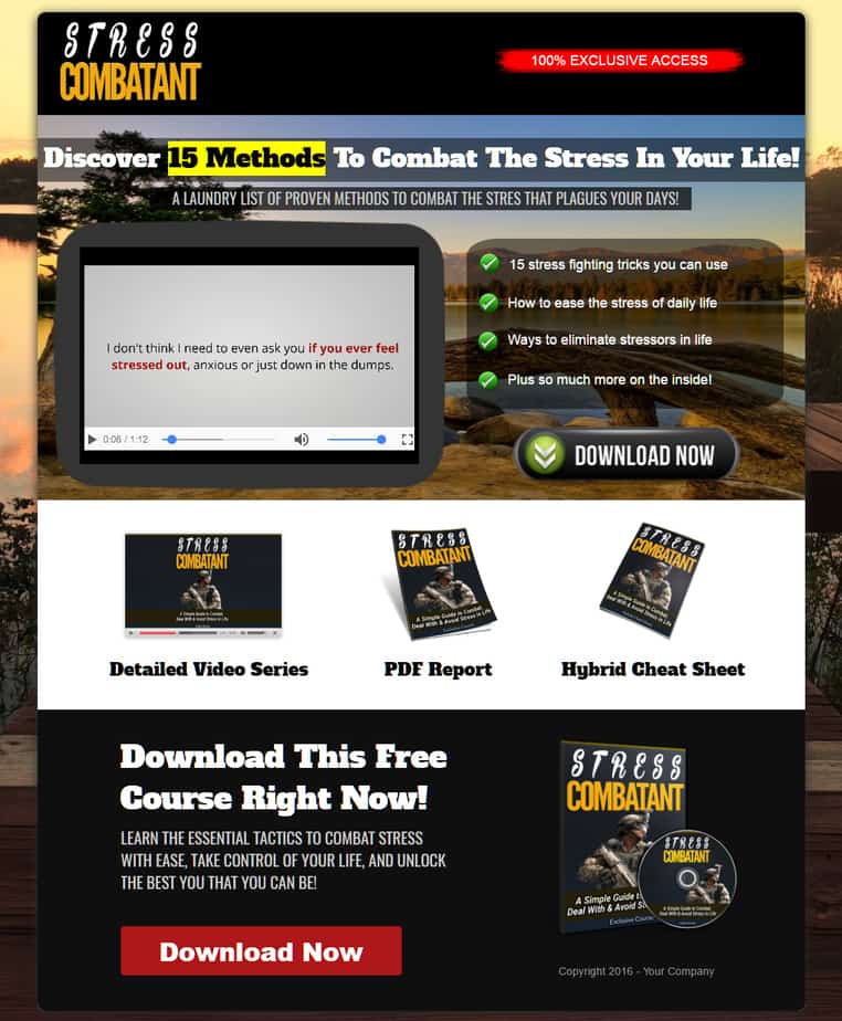 You can seriously set up this stress report funnel in this package within just a few minutes. The included step-by-step guide packaged with the report will take you by the hand and walk you through the process of setting up the report, the squeeze page and everything else.