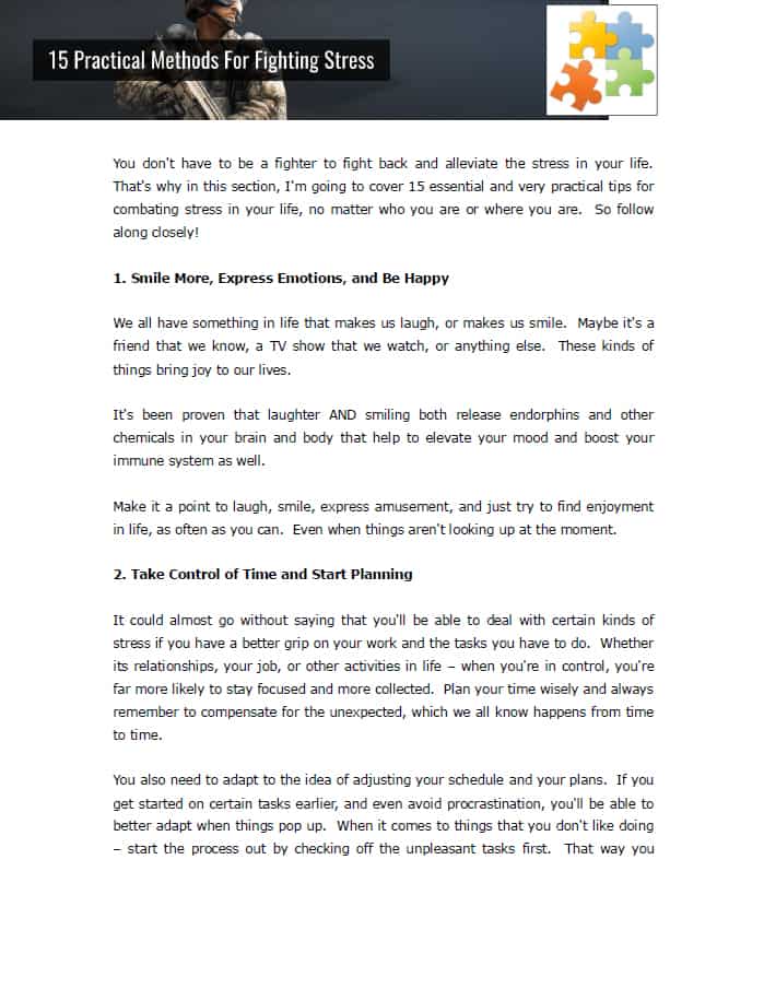Inside, you’ll discover 15 highly effective ways that anybody, regardless of who they are, can combat the stress and even avoid it in some cases as well. Each of the 15 points are heavily detailed so that it’s not just a brief overview, but a thorough explanation.