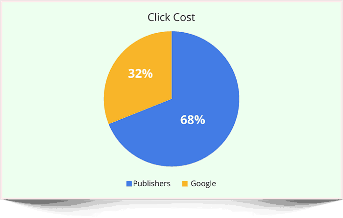 AdSense publishers receive 68% of the click cost and Google keeps 32%