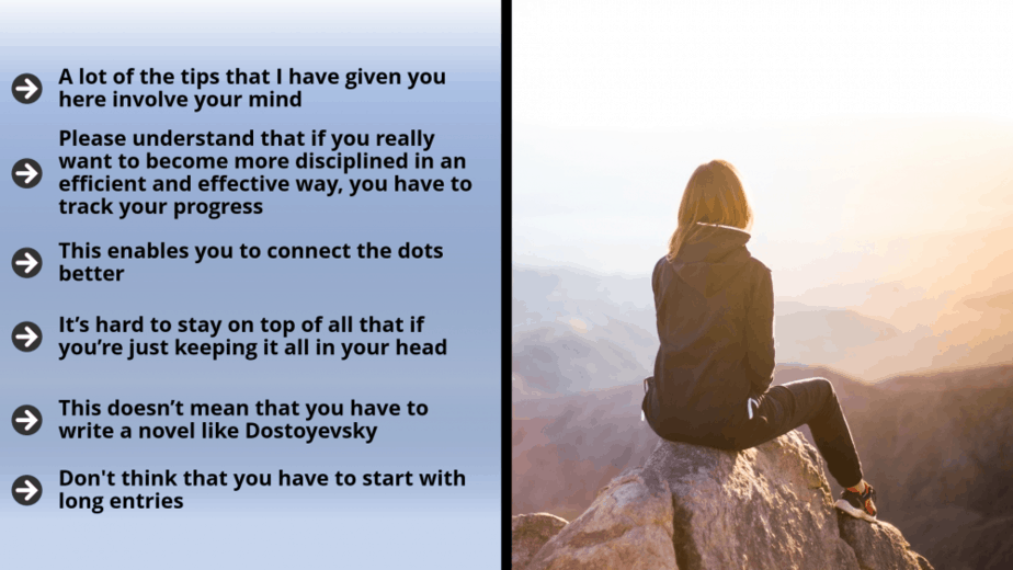 - You will learn to identify certain mindsets that you may not be aware of that can get in the way of you becoming a more disciplined person.