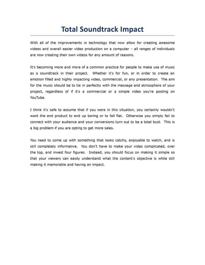 This Total Soundtrack Impact report will provide the leads you distribute it to with the inspiration, motivation, and knowledge to further their online money making adventure. As opposed to just handing them to some bottom tier completely useless information, you’re giving subscribers an actionable report that they can utilize to improve their efforts all around.