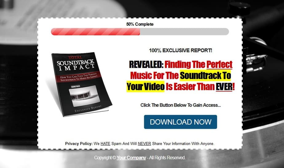 You can seriously set up this total soundtrack impact report funnel in this package within just a few minutes. The included step-by-step guide packaged with the report will take you by the hand and walk you through the process of setting up the report, the squeeze page and everything else.