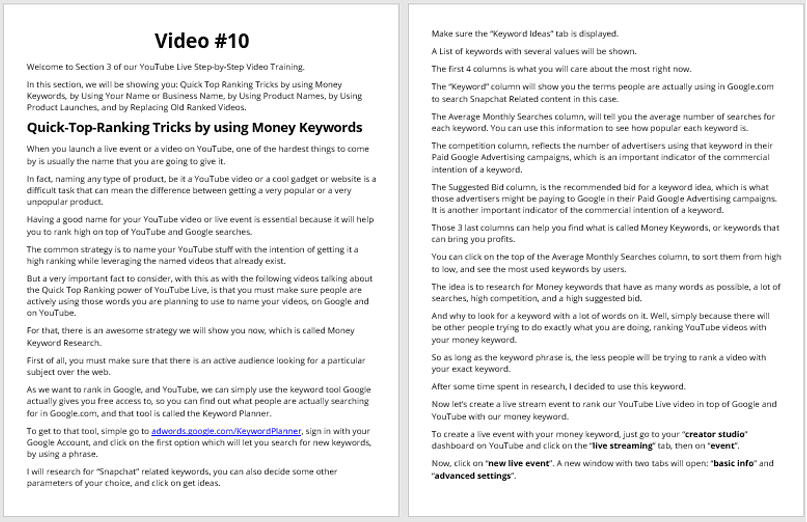 Now you’ll be able to access a high-definition, professional video training series. It’s filled with 20 crystal-clear presentations and screen recorded videos teaching Profitable YouTube Live strategies.