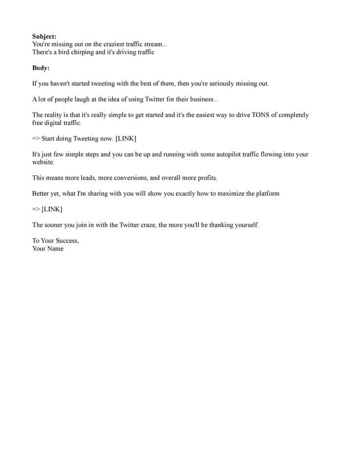 We’ve taken the time and effort to have 5 professionally written email swipes whipped up that are geared and focused on getting clicks and making conversions.