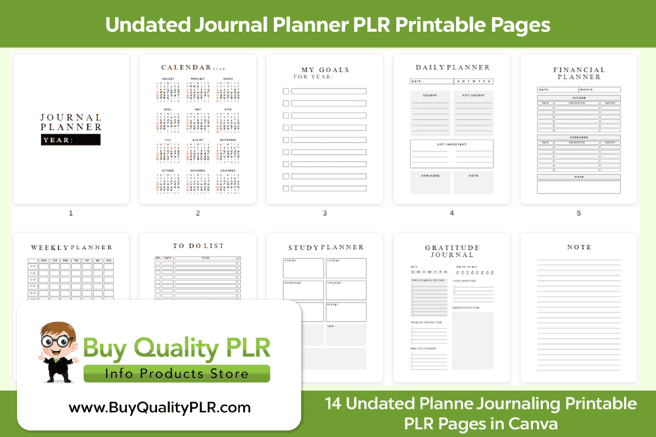 - 14 Printable Undated Journal Planner Pages PLR Pages In Canva, PNG, PDF, And PowerPoint Format