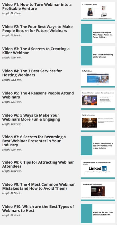 Everything you need to know from your very first webinar idea to getting attendees to keep coming to your webinars over and over will be explained in great detail.