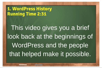 These WordPress training videos were created with the total beginner in mind. Zero Geek-Speak, very detailed & fluff-free! This allows you to learn more in a shorter amount of time while enjoying what you are learning. Sure beats trying to learn from outdated, hard to understand videos you stumble across on the web. Plus way more enjoyable than those techie-filled, sleep-inducing eBooks.