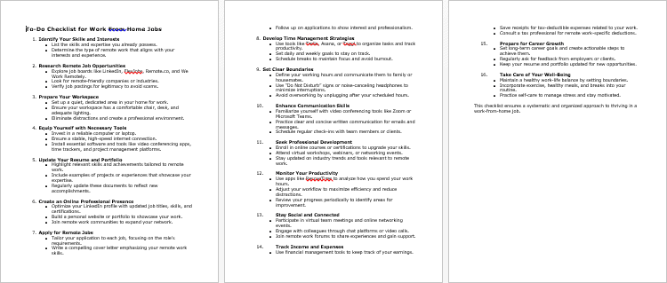 - Work From Home Jobs Checklist (592 words) – A concise action list to keep learners moving and accountable.