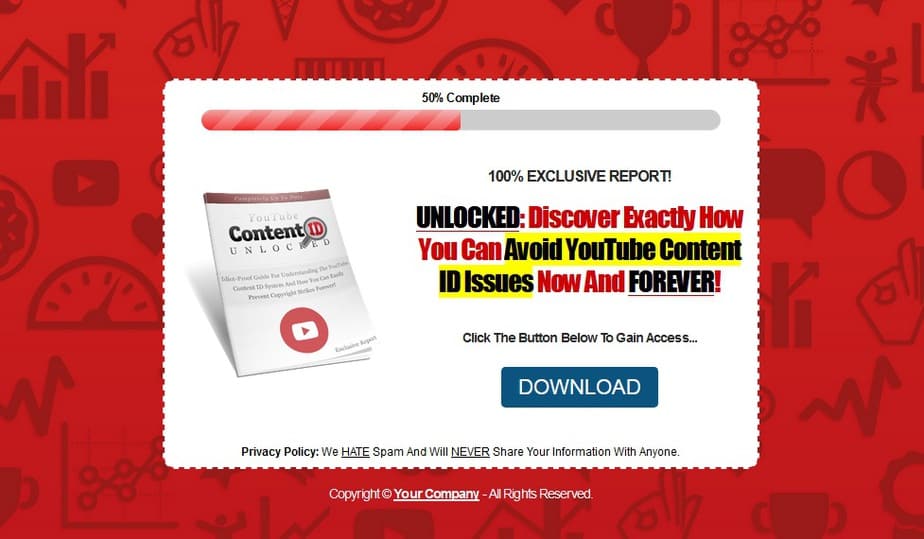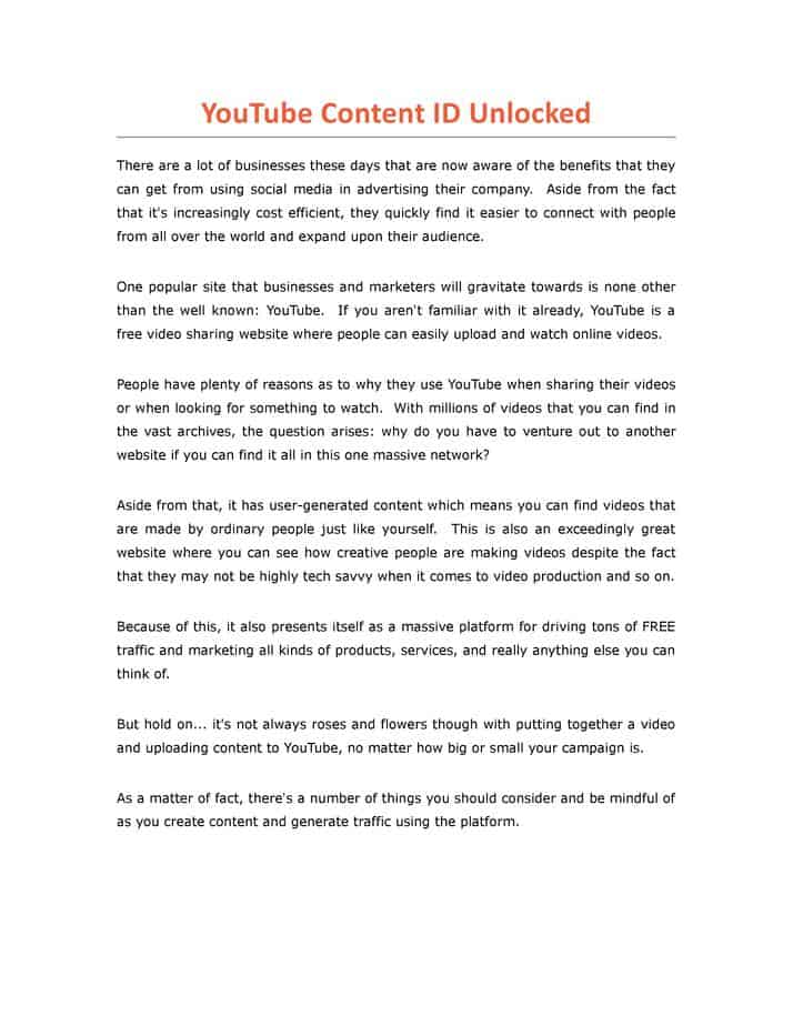 This YouTube Content ID Unlocked report will provide the leads you distribute it to with the inspiration, motivation, and knowledge to further their online money making adventure. As opposed to just handing them to some bottom tier completely useless information, you’re giving subscribers an actionable report that they can utilize to improve their efforts all around.
